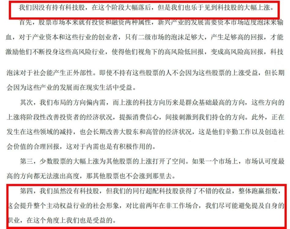 此次三季報(bào)之所以火了,不僅因?yàn)樗敿?xì)闡述了自己的行業(yè)觀點(diǎn)與操作思路,還由于他雖然不投資科技股,但卻坦然談到了自己對(duì)科技股上漲的看法,同時(shí)還破除了四大“反內(nèi)卷”誤區(qū),內(nèi)容相當(dāng)豐富。