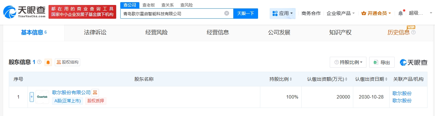 每經(jīng)AI快訊,天眼查App顯示,近日,青島歌爾星啟智能科技有限公司成立,法定代表人為李友波,注冊資本2億元人民幣,經(jīng)營范圍包括虛擬現(xiàn)實(shí)設(shè)備制造、可穿戴智能設(shè)備制造、智能家庭消費(fèi)設(shè)備制造等。股東信息顯示,該公司由歌爾股份(002241)全資持股。