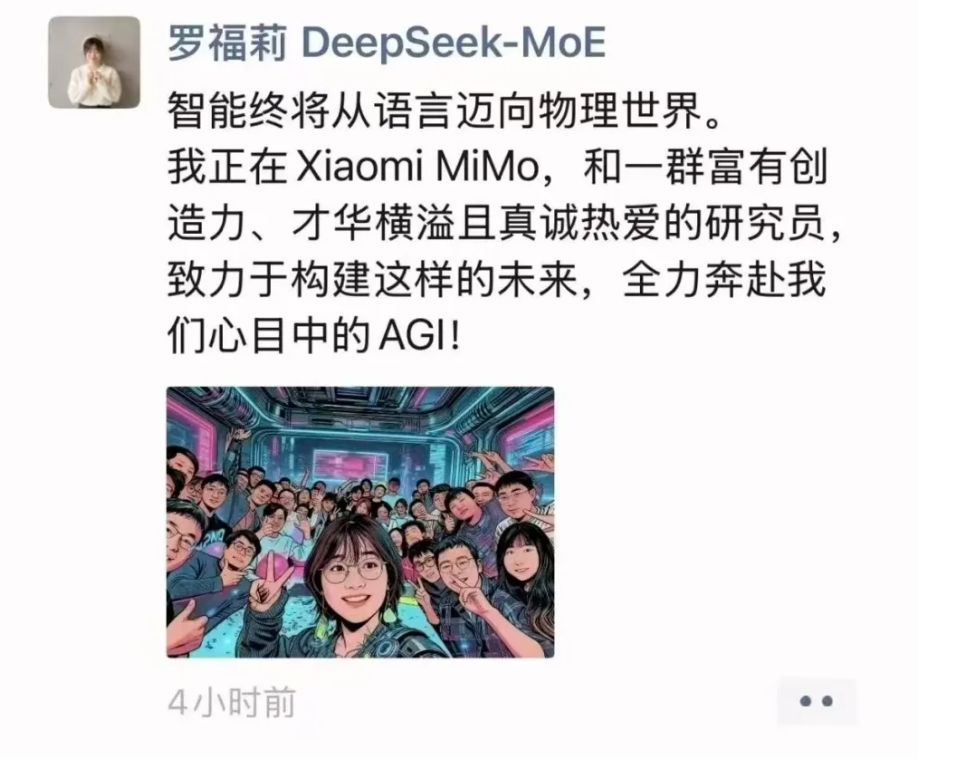 11月12日,“AI才女”羅福莉在朋友圈宣布加入小米,她表示正與一群優(yōu)秀的研究員致力于構(gòu)建從語言到物理世界的智能未來,全力奔赴AGI。羅福莉本科就讀于北師大計算機專業(yè),碩士進入北大計算語言學(xué)深造,畢業(yè)后她先后加入阿里巴巴達摩院、幻方量化,曾負責(zé)開發(fā)多語言預(yù)訓(xùn)練模型,推動項目開源,參與研發(fā)多個模型。