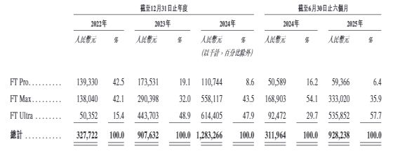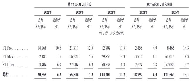 不過,今年上半年?duì)I收占比近六成的FT Ultra并非毛利率最高的業(yè)務(wù)。仍按今年上半年計(jì)算,該項(xiàng)業(yè)務(wù)的毛利率近9.7%,而營(yíng)收占比35.9%的FT Max毛利率幾乎是它的兩倍(18.3%)。