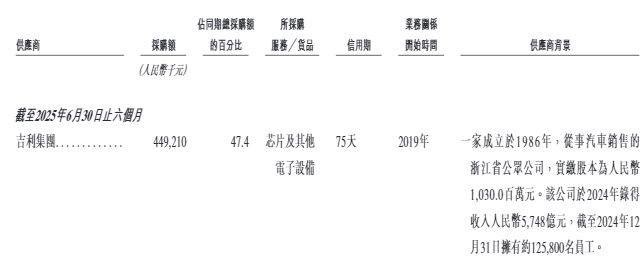 需要指出的是,福瑞泰克去年和今年上半年這家占總采購(gòu)額39.5%和47.4%的供應(yīng)商,也是吉利,福瑞泰克向其采購(gòu)芯片及其他電子設(shè)備。此外,相較于其他主要供應(yīng)商最高60天的信用期,福瑞泰克給予了吉利75天的信用期。