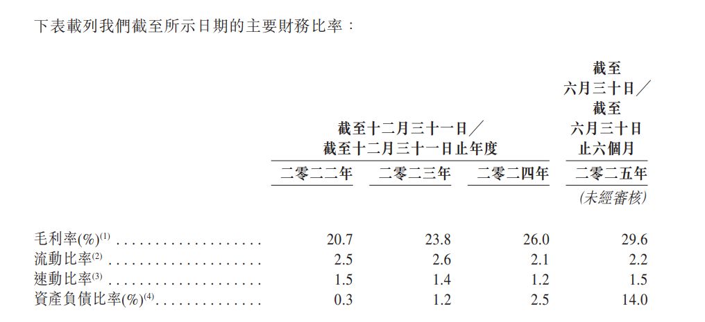 此外,中堅(jiān)科技資產(chǎn)負(fù)債率從2022年的0.3%增長(zhǎng)至2025年6月末的14%,主要因新增銀行借款7750萬(wàn)元及租賃負(fù)債增加。盡管存貨周轉(zhuǎn)效率提升(平均庫(kù)存周轉(zhuǎn)天數(shù)從196天降至134天),但應(yīng)收賬款周轉(zhuǎn)天數(shù)反彈至82天;經(jīng)營(yíng)活動(dòng)所得的現(xiàn)金流量?jī)纛~從2022年的1.02億元驟降至2024年的599.7萬(wàn)元,與溢利增長(zhǎng)背離,顯示出盈利質(zhì)量弱化。