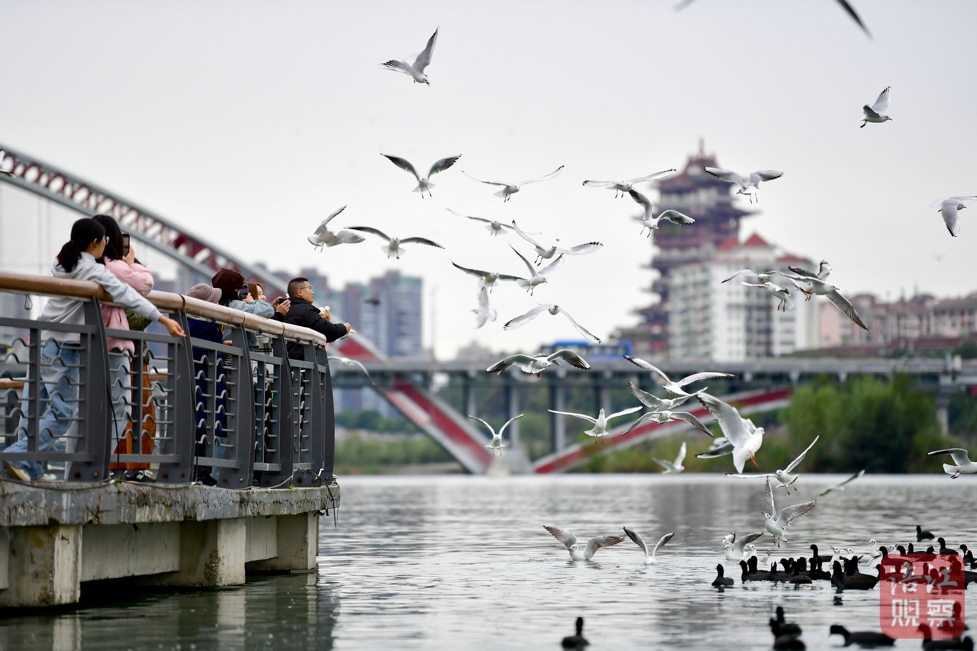 紅嘴鷗在綿陽(yáng)三江湖國(guó)家濕地公園自在騰飛。涪江觀察記者 王勇攝