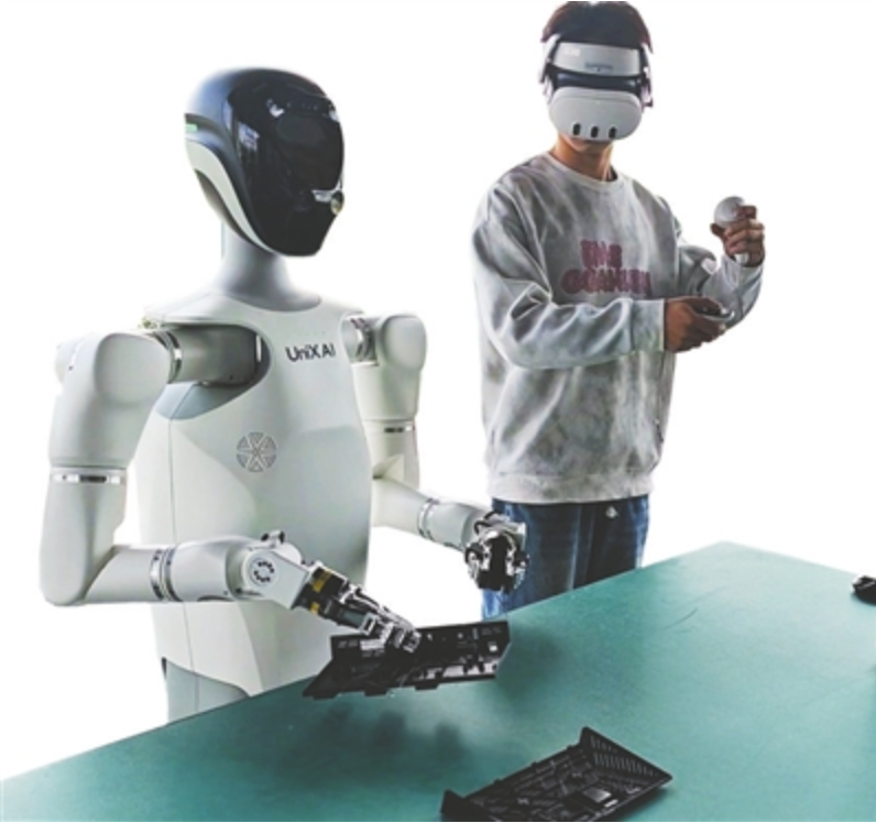“注意看儀表參數(shù),轉(zhuǎn)鼓轉(zhuǎn)速再微調(diào)一下!”近日,在四川省具身智能機(jī)器人訓(xùn)練場(chǎng)三樓,數(shù)據(jù)采集員正通過(guò)遙操設(shè)備,指導(dǎo)一臺(tái)人形機(jī)器人反復(fù)練習(xí)柔性穿線動(dòng)作。抓取、穿引、放置,每一個(gè)細(xì)微動(dòng)作都被攝像頭精準(zhǔn)捕捉,源源不斷地“喂”給訓(xùn)練模型。