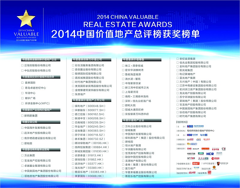 | 16:25-17:25 | 60′ | 2014中國(guó)價(jià)值地產(chǎn)總評(píng)榜榮譽(yù)盛典 | |