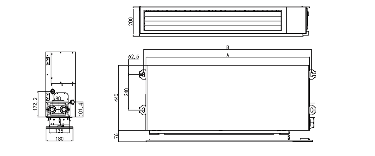 Ultra-thin, ceiling concealed type FCUs, suitable for hot/chilled water system