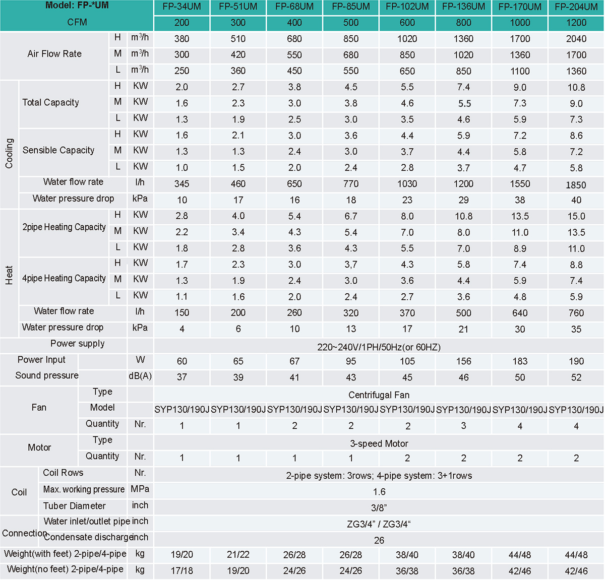 Coil are made of copper tubes and high exchange surface area aluminum blue fins. All coils are 100% tested against leaks by 16bar,1.6Mpa air pressure. with 3/4”pipe connections and air bleed vent.